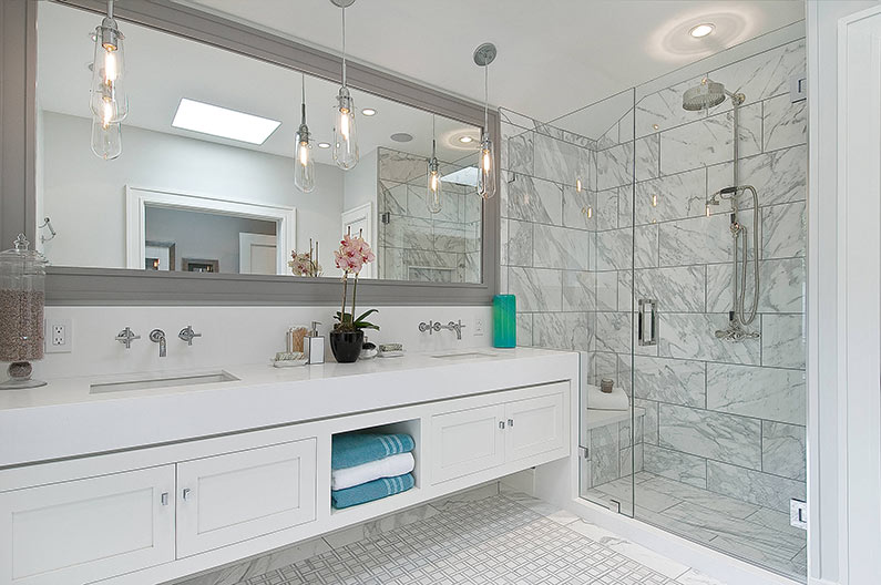Lo stesso concetto potrà essere applicato alla sala da bagno dove pochi elementi di pregio daranno ai sanitari il fascino di un’area benessere esclusiva. Armonia ed equilibrio tra i piani di appoggio, un piatto doccia installato a filo pavimento con la sua porta in cristallo ed una sapiente illuminazione completeranno l’arredo della sala più intima della casa.